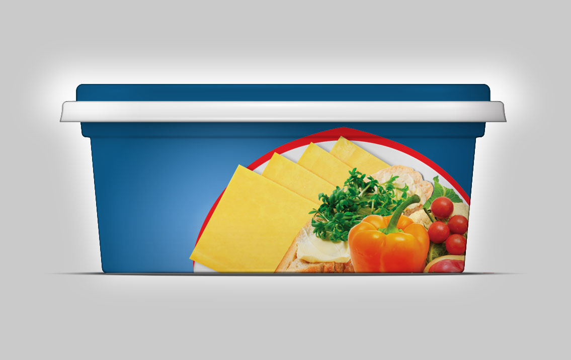 We approached the task by switching a bit from the so far used designs: we wanted a packaging from the view of the consumer and wanted to show how you can actually enjoy the product inside, more than just showing what you get with every purchase. So we thought about what you can eat the cheese slices/triangles with (like paprika, tomatoes, greens, on pizza, on sandwiches, etc) and did a colorful and super tasty representation of potential combinations, with the cheese as the main ingredient.